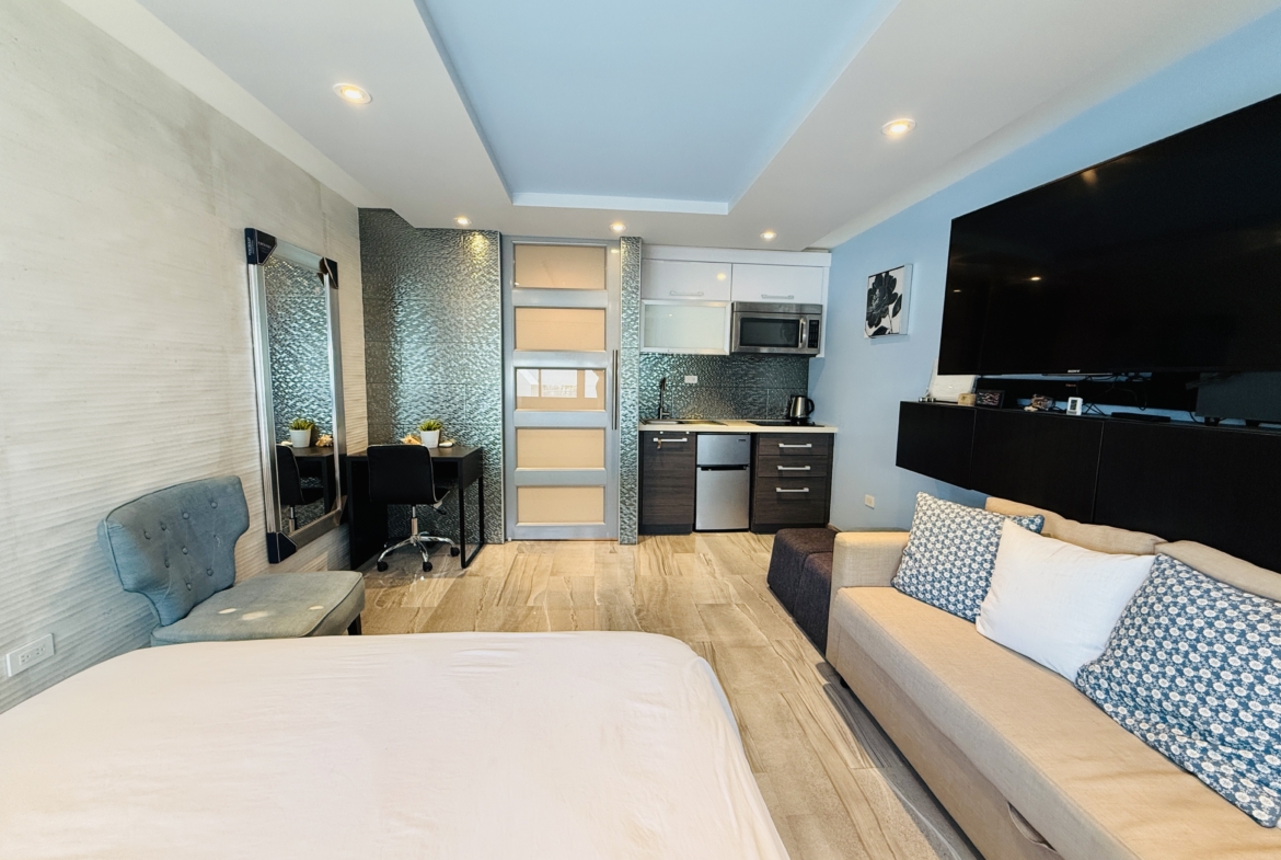 Este estudio amueblado, ubicado en el segundo piso, es perfecto para quienes desean vivir cerca del mar y con todas las comodidades a pasos de distancia. ¡Remodelado y listo para mudarse!