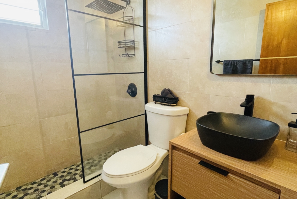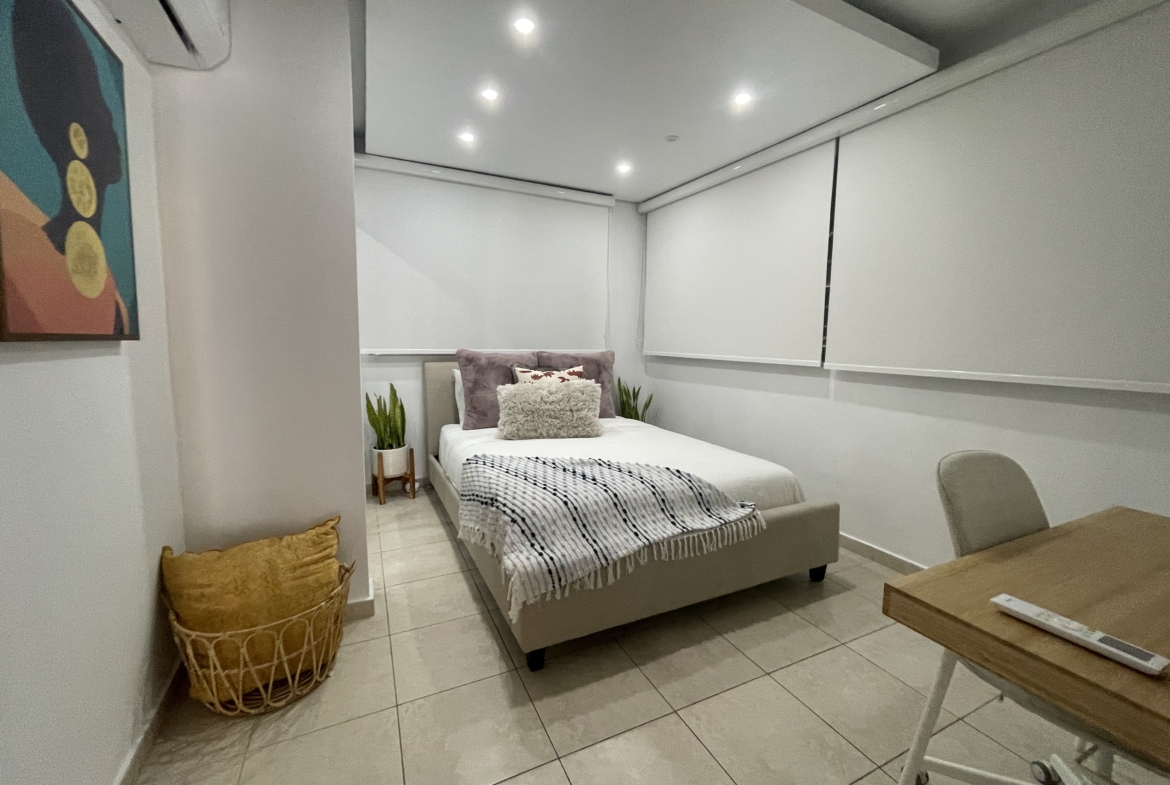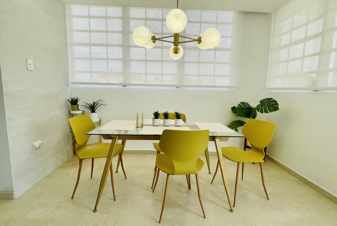 Moderno apartamento completamente amueblado y equipado, ubicado en el segundo piso de una casa multifamiliar en la reconocida Urbanización Country Club en Carolina. Cuenta con área de cocina funcional, comedor, sala, balcón privado y excelente iluminación natural.