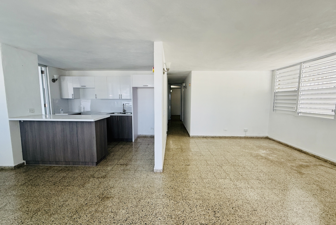 Apartamento remodelado de tres habitaciones y dos baños ubicado en el primer nivel de una casa multifamiliar en Villa Carolina. Cuenta con una marquesina amplia, sala, comedor, área de cocina sin enseres y aire acondicionado. No está amueblado. Ideal para una familia o pareja que desee un espacio cómodo, moderno y bien ubicado.